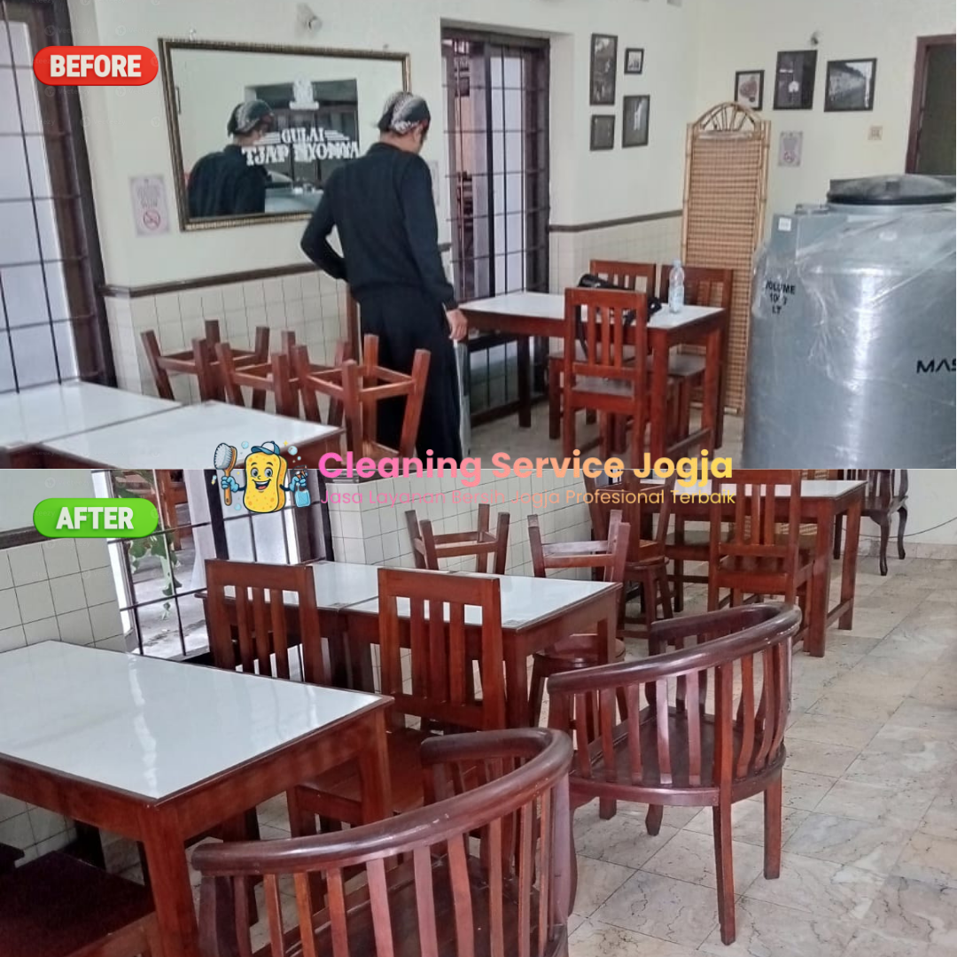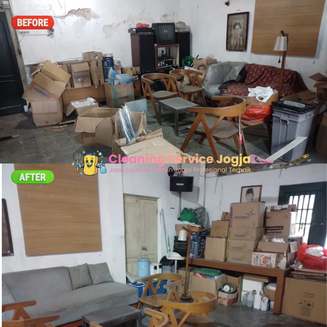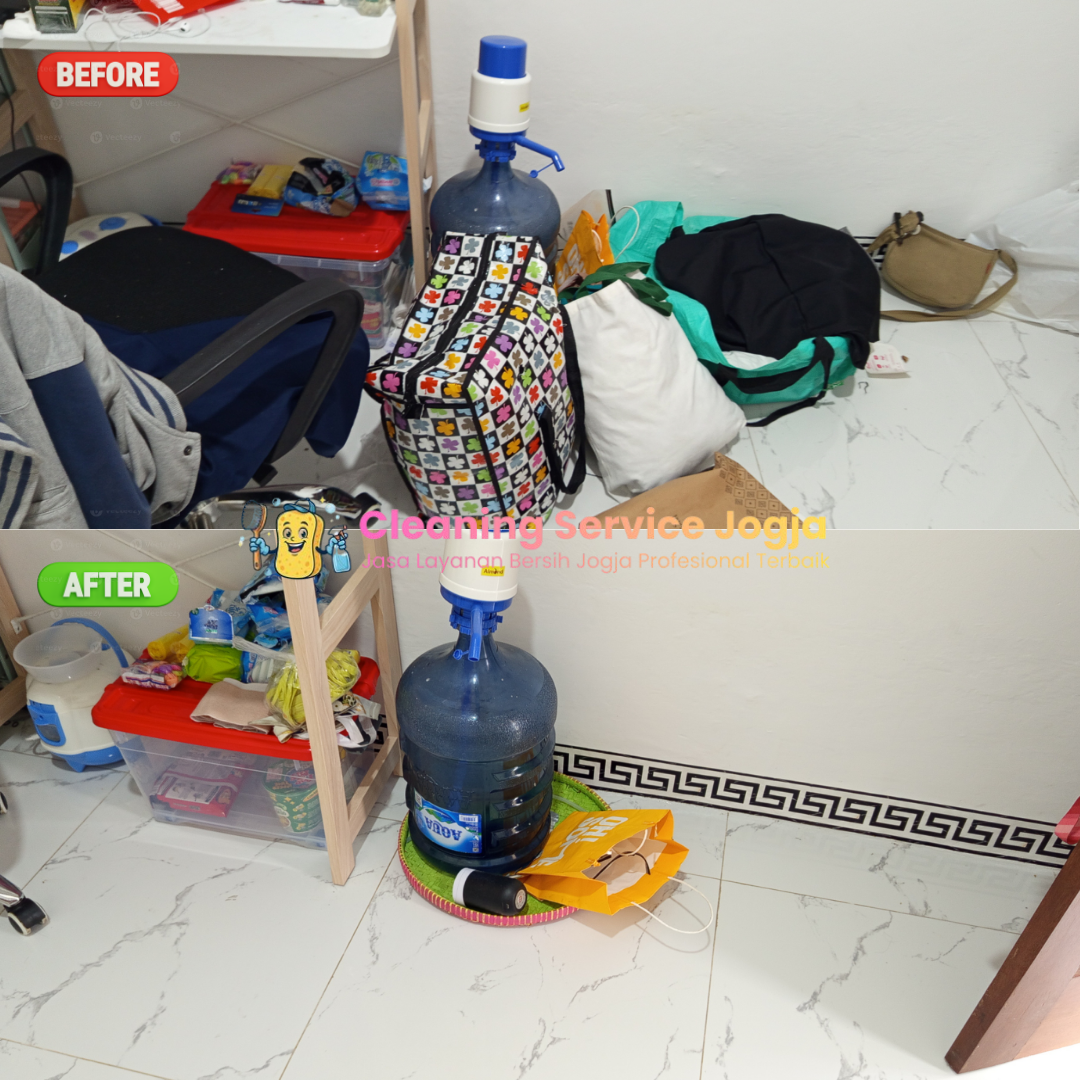 Dokumentasi before–after layanan cleaning di rumah, kost, apartemen, dan kantor oleh tim Cleaning Service Jogja.